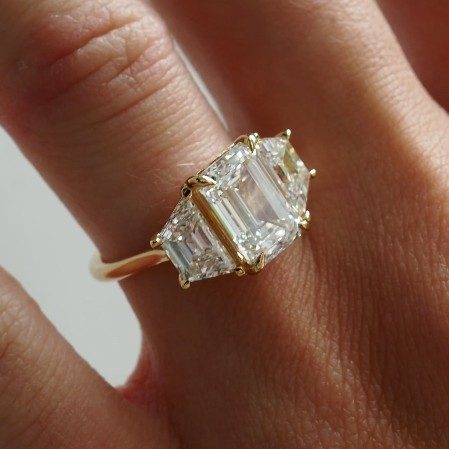 Emerald & Trapezoid Trilogy | 4.7ct Lab-Grown Diamond Ring
