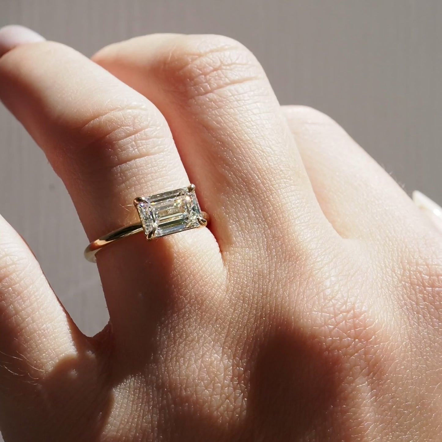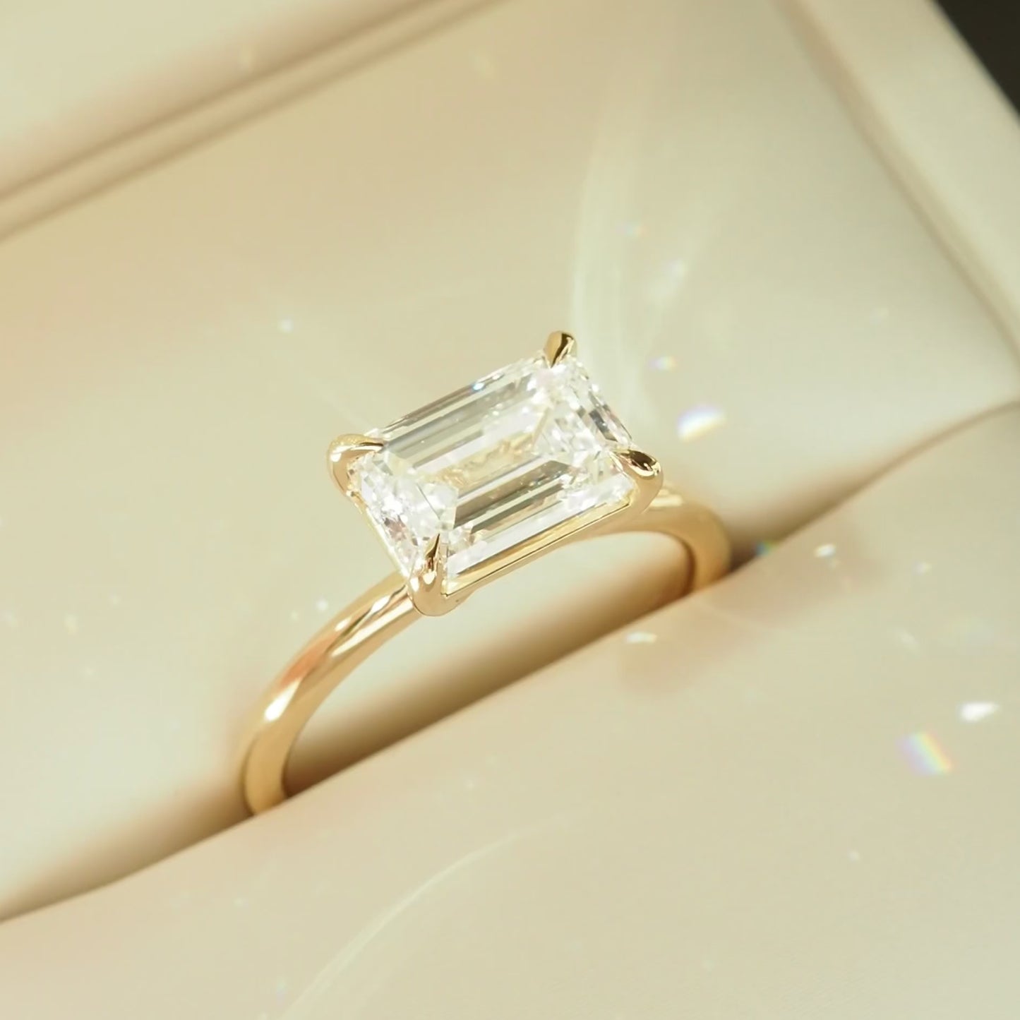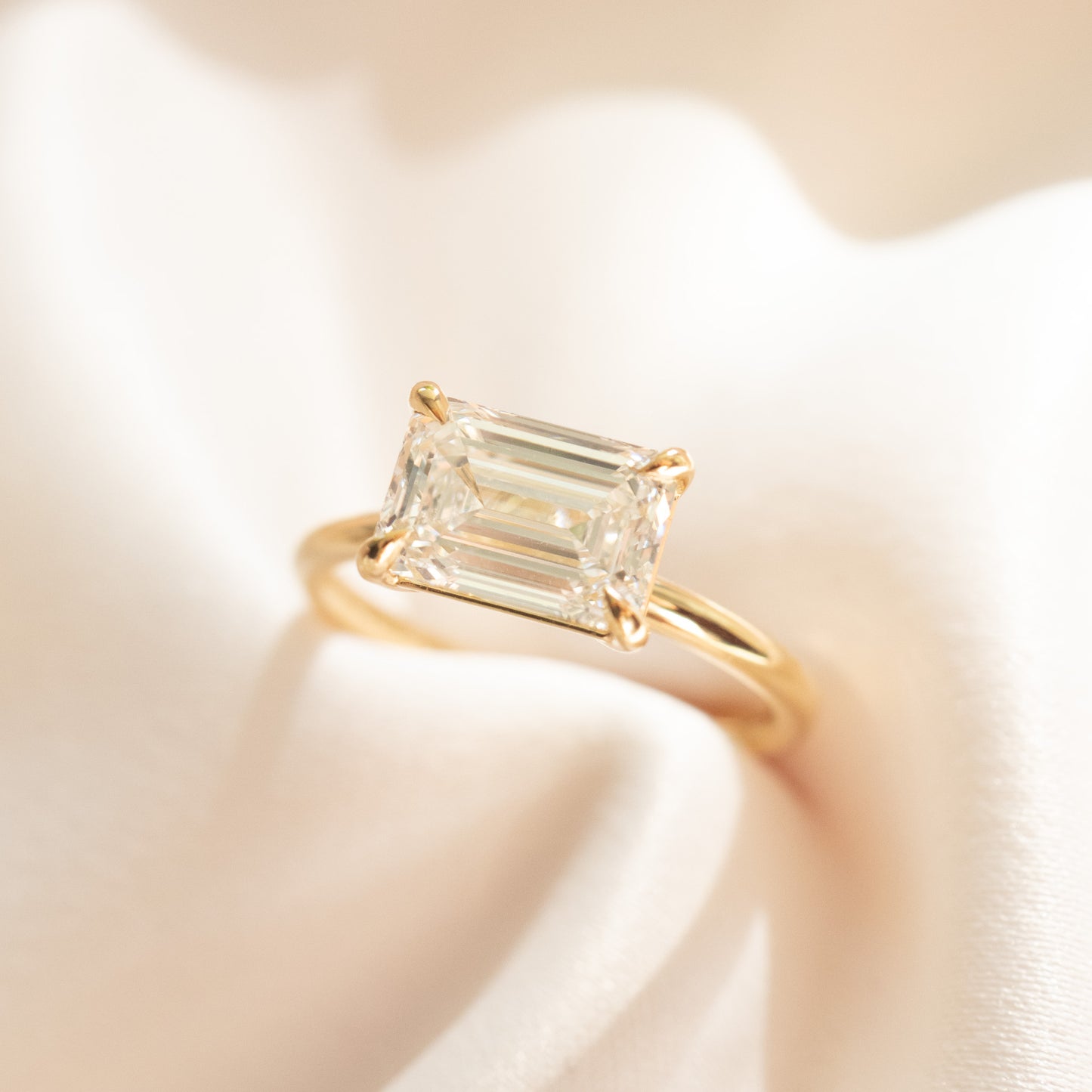 Fae | East West Emerald Diamond Engagement Ring Ready Made